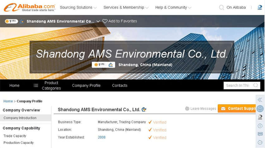 阿里巴巴國(guó)際站在世界企業(yè)間B2B電子商務(wù)領(lǐng)域享有盛譽(yù),號(hào)稱全球最大的商務(wù)交流社區(qū)和網(wǎng)上交易市場(chǎng)。公司為進(jìn)一步開(kāi)拓國(guó)外市場(chǎng)、加大海外市場(chǎng)的溝通與宣傳,進(jìn)一步提升公司的業(yè)務(wù)量,2017年12月5山東奧美環(huán)境股份有限公司網(wǎng)上店鋪在阿里巴巴國(guó)際站開(kāi)店。現(xiàn)在可以登錄https://www.alibaba.com/(國(guó)際站官網(wǎng))搜索Shandong AMS Environmental Co. , Ltd. (公司名稱)或相關(guān)產(chǎn)品的英文名稱查詢公司產(chǎn)品具體信息。